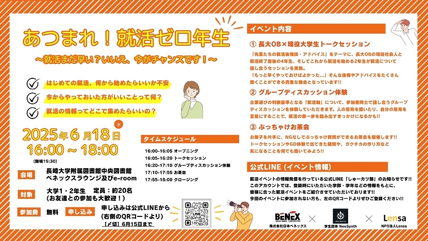 主 催:株式会社 日本ベネックス、学生団体 Neosynth、学生団体 NPO法人Lensa