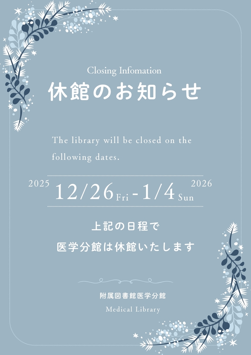 医学分館も、年末年始の休館期間がやってきます。